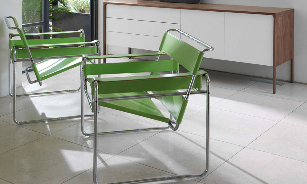 1925年,他从"阿德勒"牌自行车的车把上得到启发,从而萌发了用钢管制作家具的设想,设计了第一把钢管椅子「瓦西里椅」,世界上首创的钢管家具。造型轻巧优美,结构单纯简洁,并具有优良的性能,这种新的家具形式很快风行世界。「瓦西里椅」被称为二十世纪椅子的象征,在现代家具设计史上具有重要的意义。由于钢管家具富含包豪斯最典型的特点,以至于被后人认为是包豪斯的同义词。